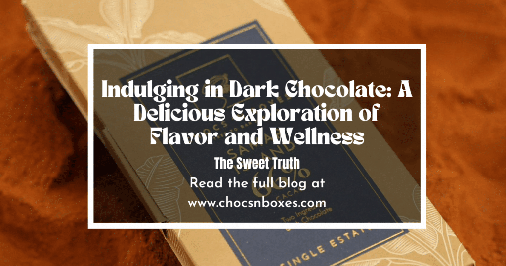 At Chocs ‘N Boxes, we take immense pride in offering a diverse selection of high-quality dark chocolate bars, each uniquely crafted to cater to different tastes and preferences. Our commitment to excellence ensures that every bite delivers a rich and satisfying experience. Explore our exquisite range: